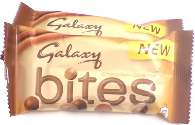 So the time came, my wife and I sat down to watch Gone with the wind and as Clark Gable made his first appearance we opened the Galaxy bites. The delicious smell wafted from the pouch and we tucked in, both popping three of them in our mouths. A few seconds later a look of confusion came across both or faces, the chocolate coating had melted but there was a substratum of caramel hidden beneath the chocolate crust. My wife and I abhor caramel! We were expecting solid chocolate balls but in reality we got a hidden globules of chewy caramel. We couldn’t eat them, the caramel plays havoc with our false teeth! We looked at the packet and it took us some time to see in the top right hand corner, in very small pale brown letters the words “chocolate caramel”. Had I seen this I certainly wouldn’t have bought them, I would have gone for one of your other pouch based chocolate products. So the nature of my complaint is that the words “chocolate caramel” needs to be made easier to read, lest someone else fall into the trap of expecting solid chocolate but getting a nasty hidden chewy surprise!